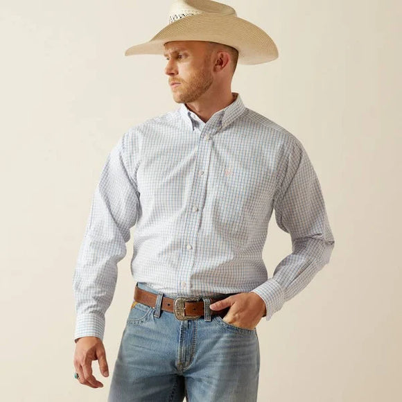 Ariat Men's Alan Blue Peach & White Plaid Western Shirt