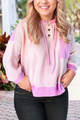 Embrace fun and comfort with the Cotton Candy Top, featuring a playful patchwork design in ribbed knit fabric. Its loose fit and quarter button detail make it perfect for easygoing days, while the soft texture keeps you cozy and stylish. Add a splash of whimsy to your wardrobe with this charming blouse!