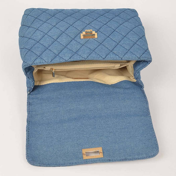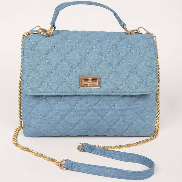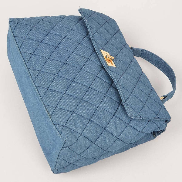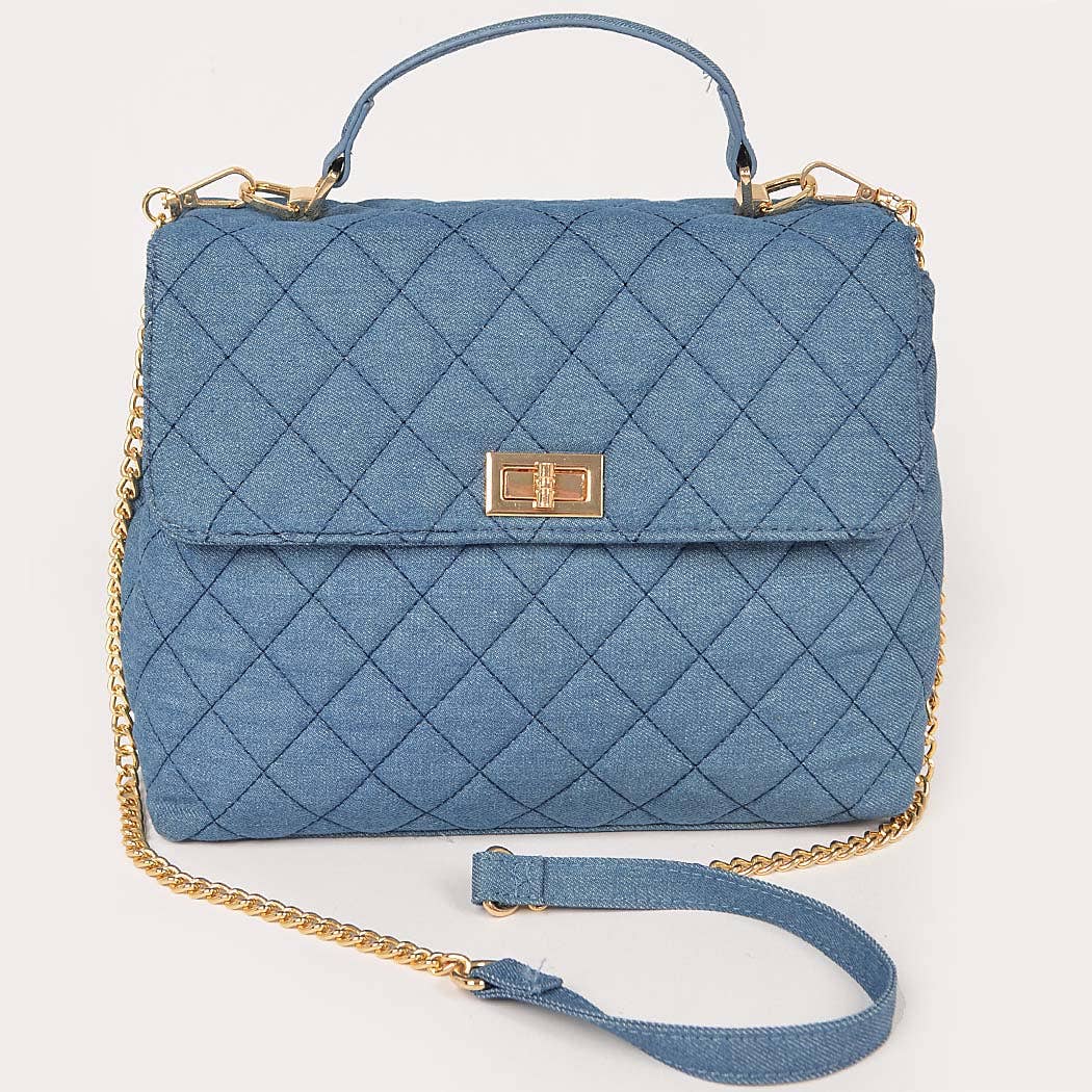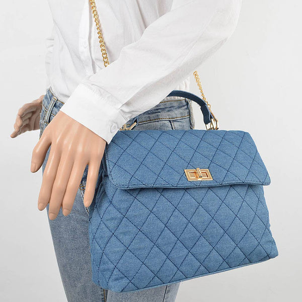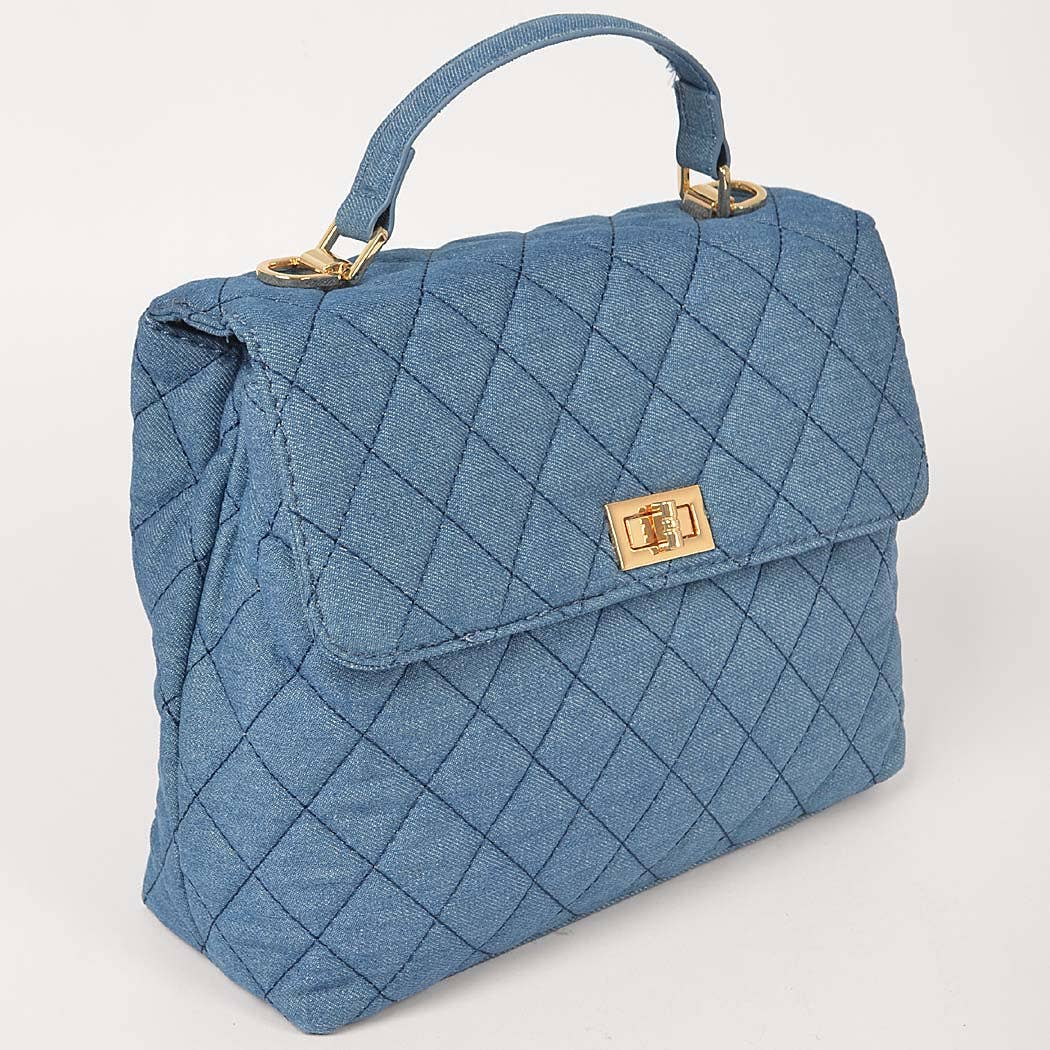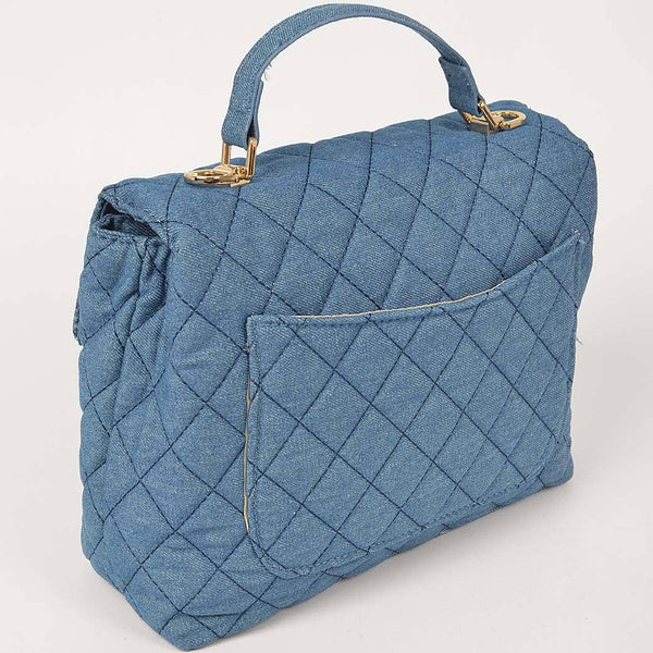 Quilted Denim Top Handle Crossbody Handbag
