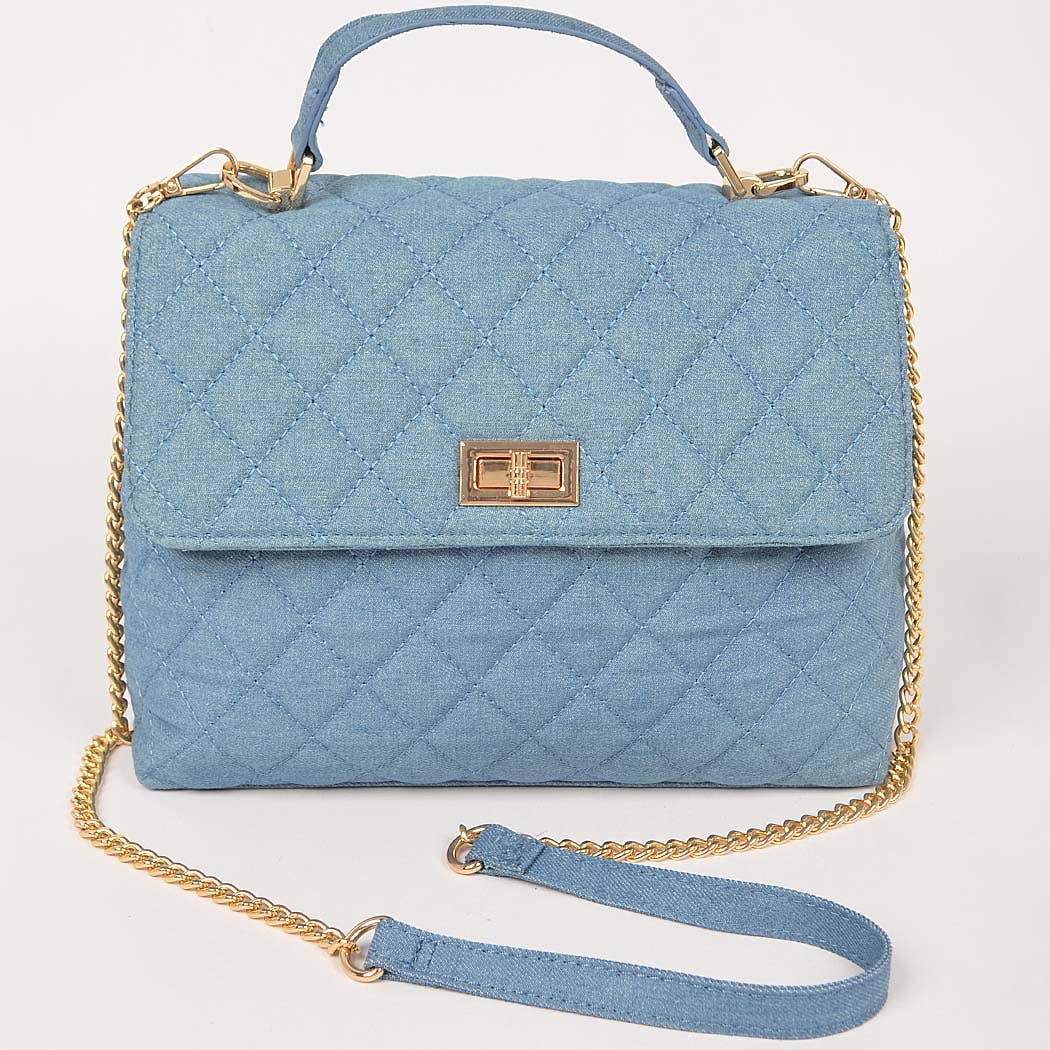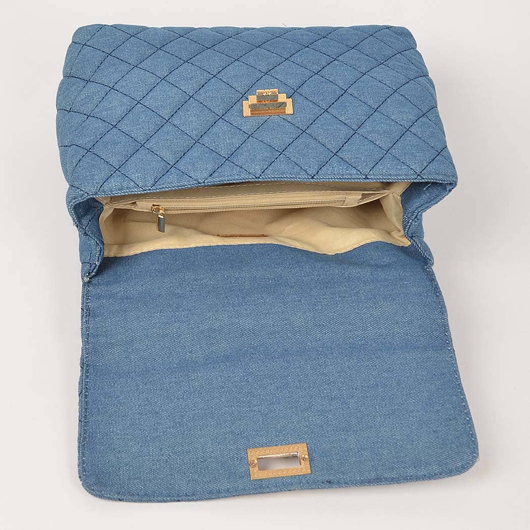- Quilted Denim Top Handle Crossbody Bag