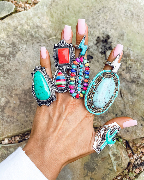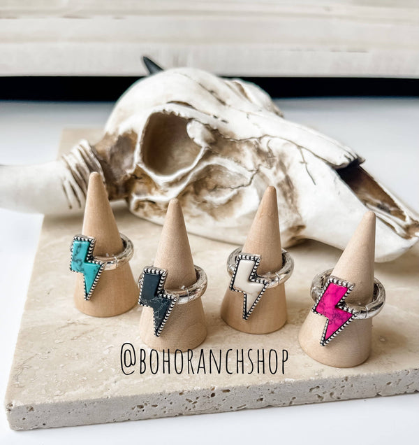 Bolt Ring | Western Lightning Bolt Adjustable Stretch Ring | White Turquoise Black Ring | Anilo | Accessories | Jewelry