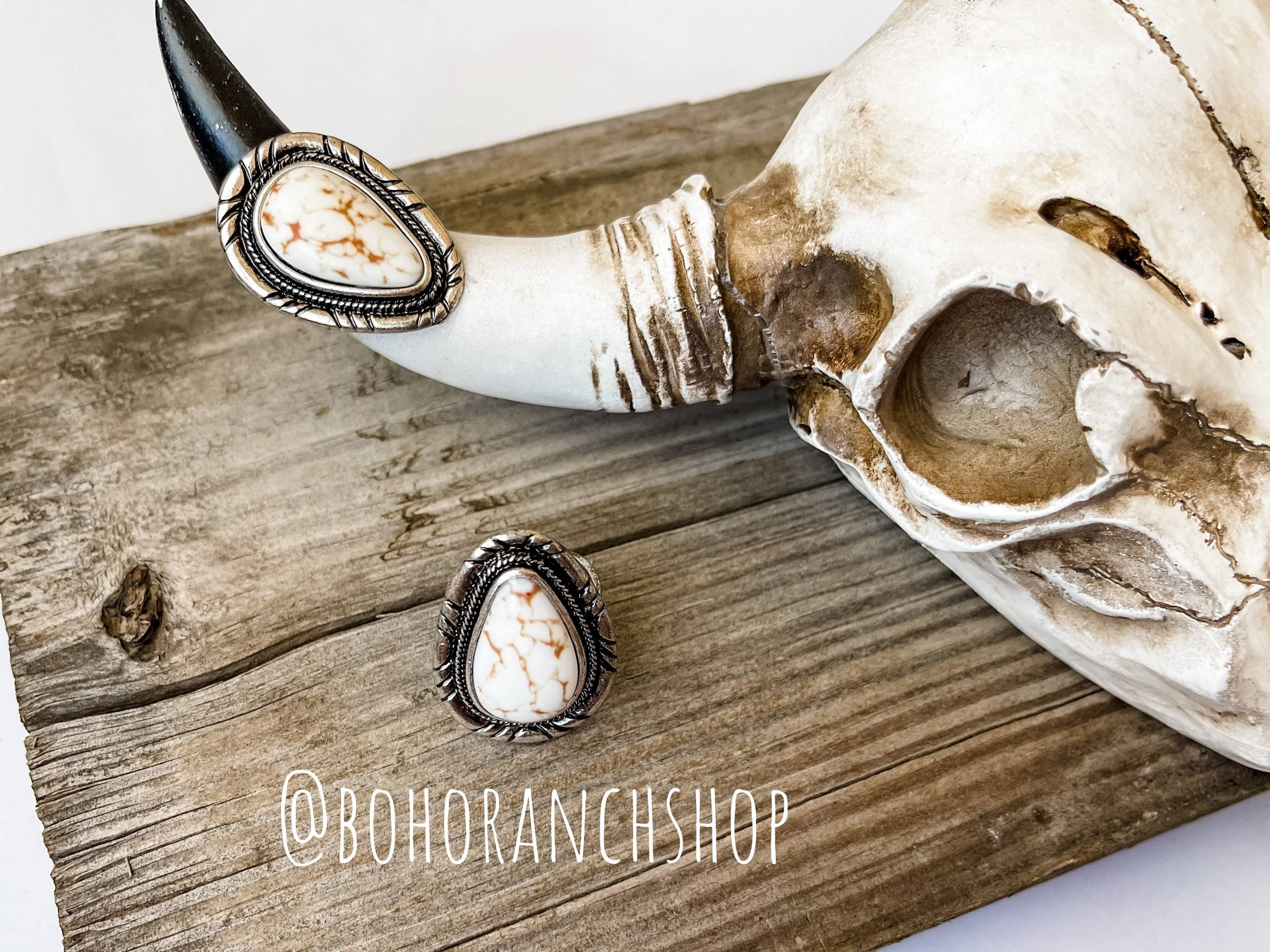 Tear Drop Ring Western Stone White Turquoise Colored Ring Adjustable | Gift Idea | Anilo | Accessories | Jewelry
