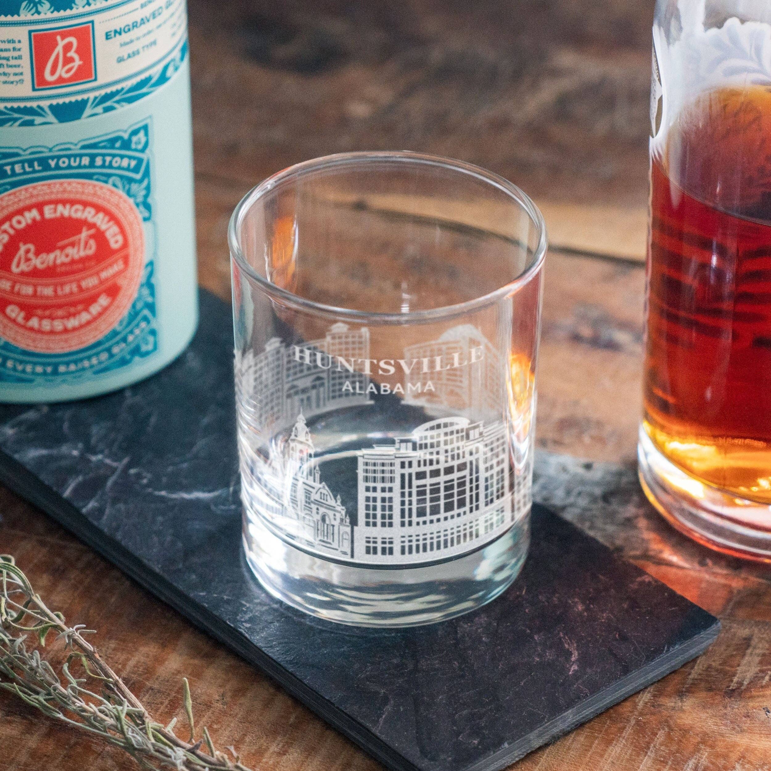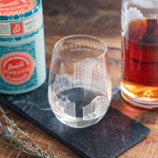 Huntsville, Alabama City Skyline Engraved Glasses: Old Fashion ~ 12 oz