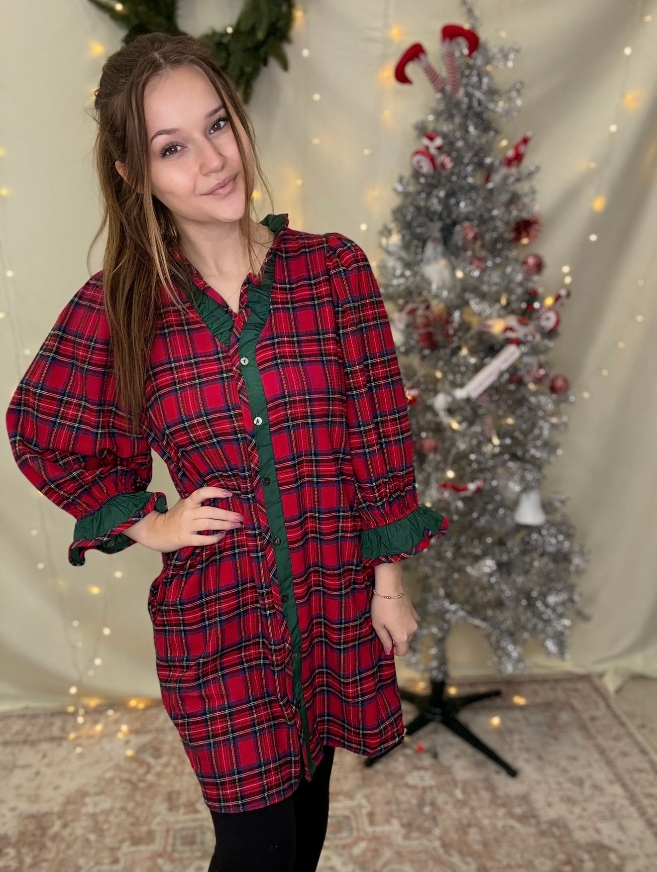 Turn heads this holiday season in our Mistletoe Moment Dress — a festive red plaid number that perfectly blends cozy charm with effortless style. Featuring puff sleeves, a button-down front, and soft flannel-like fabric, this mini dress is made for everything from Christmas photos to fireside gatherings. The relaxed fit keeps you comfy, while the bold plaid print brings all the holiday cheer.
