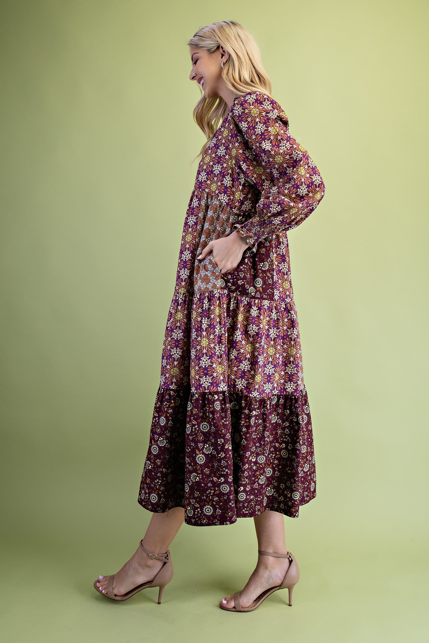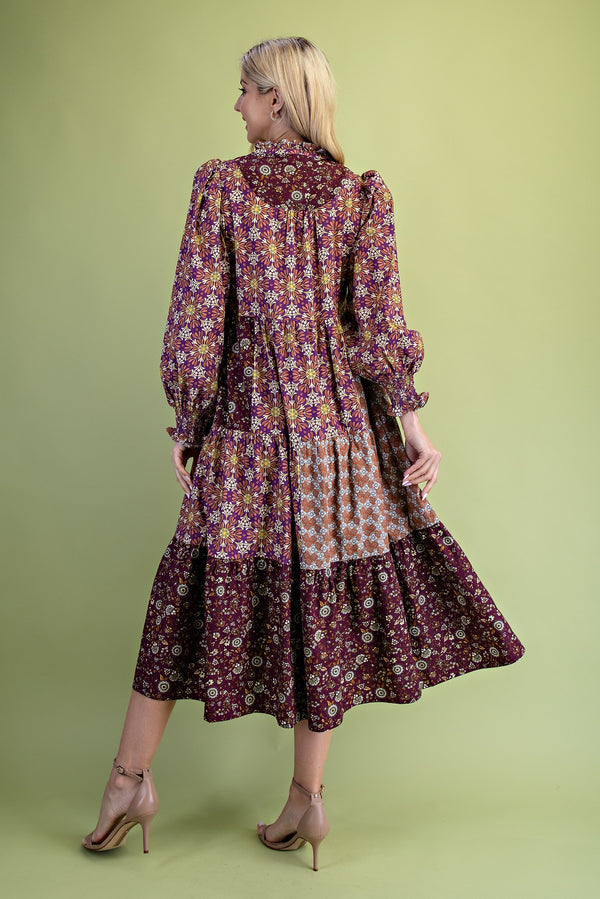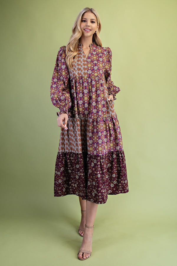 Step into timeless charm with the Vintage Reverie Dress. This mixed print, long sleeve tiered midi dress blends playful patterns and flowing layers for a look that’s effortlessly whimsical. Perfect for twirling through your day or dancing into the night, its comfortable fit keeps you feeling free and fabulous wherever you go. Embrace vintage vibes with a modern twist!