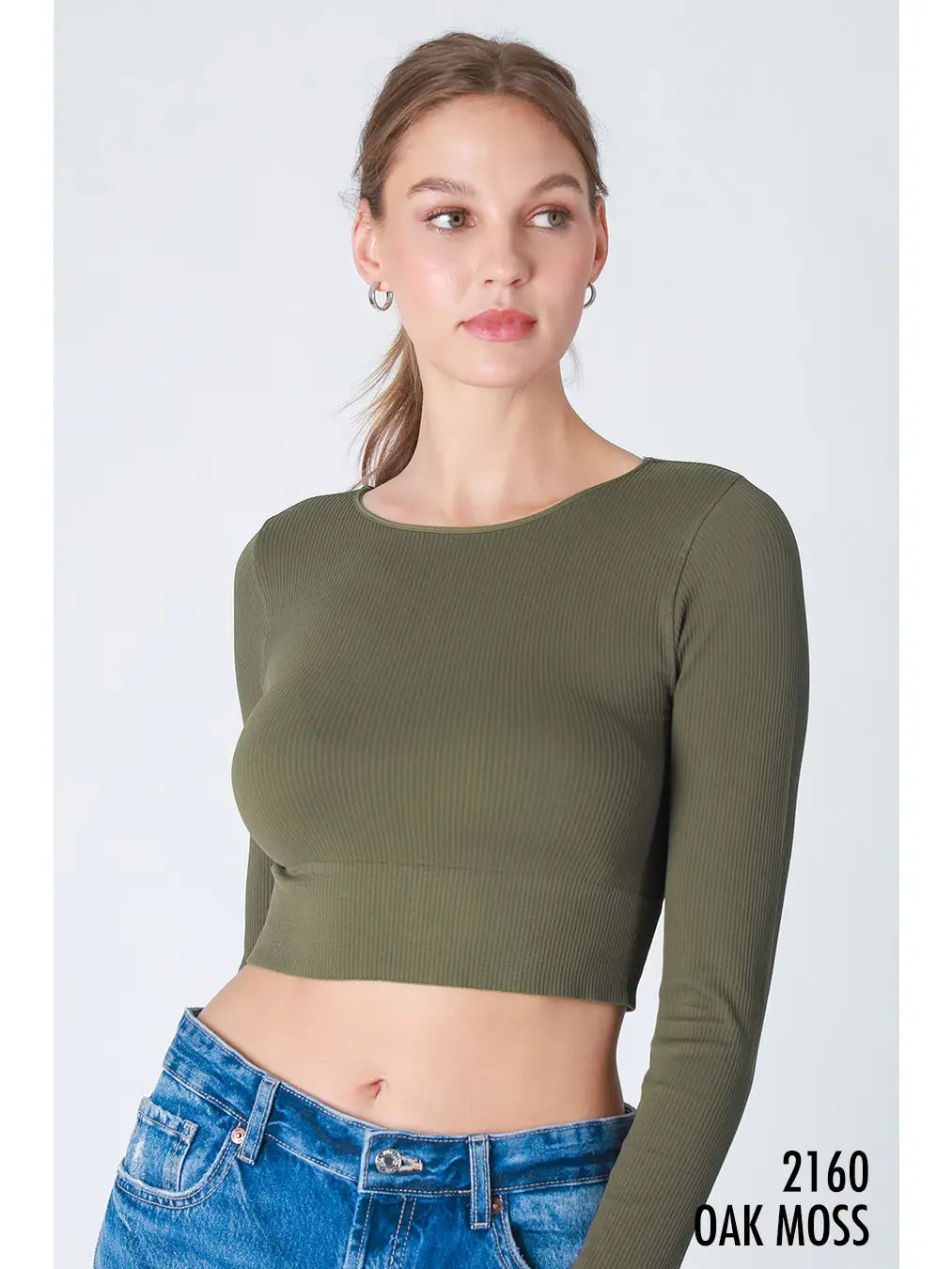 NikiBiki Ribbed Long Sleeve Crew Neck Crop Top