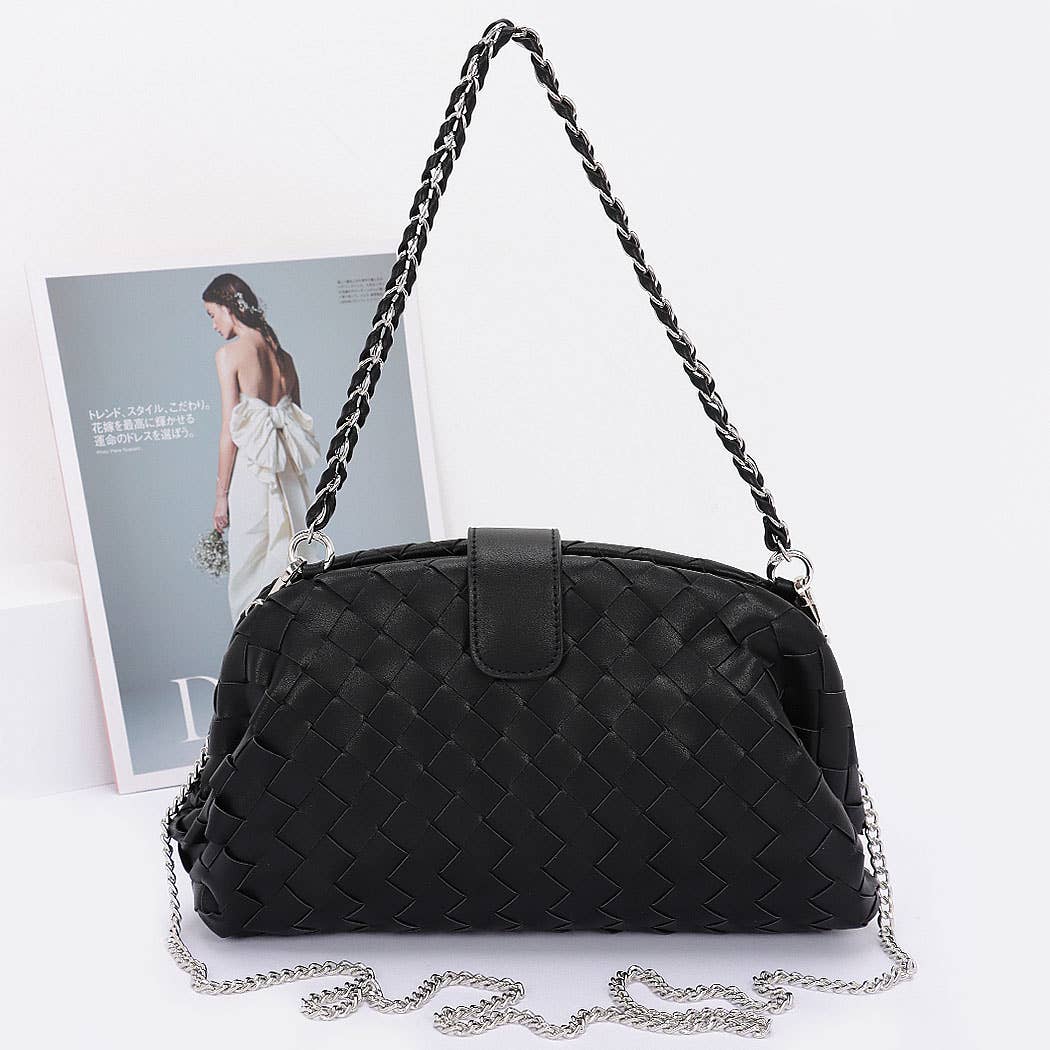 - * Meet the "Faux Leather Braided Frame Shoulder Bag" – a fabulous shoulder bag that redefines sophistication. Featuring a braided frame and a chic chain strap, this bag is designed for the modern woman who values both style and practicality. Embrace your fashion-forward side with the Faux Leather Braided Frame Shoulder Bag.