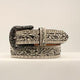 This gorgeous ladies Ariat belt by M&F Western Products has country roots with a modern flair. It features a white floral embossed piercing with silver glitter underlay and silver laced edges. It is finished with a beautifully detailed buckle. This quality belt will look good with any outfit, and will easily be your favorite.