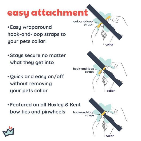 Each pinwheel has a soft Velcro attachment which allows you to quickly and easily fasten to any collar. Velcro and go! Great for everyday wear or celebrating any occasion—from holidays to birthdays, to every special milestone in between!