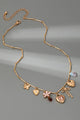 Charm Necklace a delightful mix of charms, including a Rhinestone heart, strawberry, flower, butterfly and heart charms, all beautifully strung on a sleek chain. The charm patterns brings a trendy, bold vibe, the heart represents love, and the rhinestone charm adds a bit of glamour and shine. Product details length: 17" charm size: varies .25" - 1" ext: 3" Ball Chain Ext clasp: Lobster Claw metal finish: Gold Plated product: Lead & Nickel Compliant durability: Double E-coating