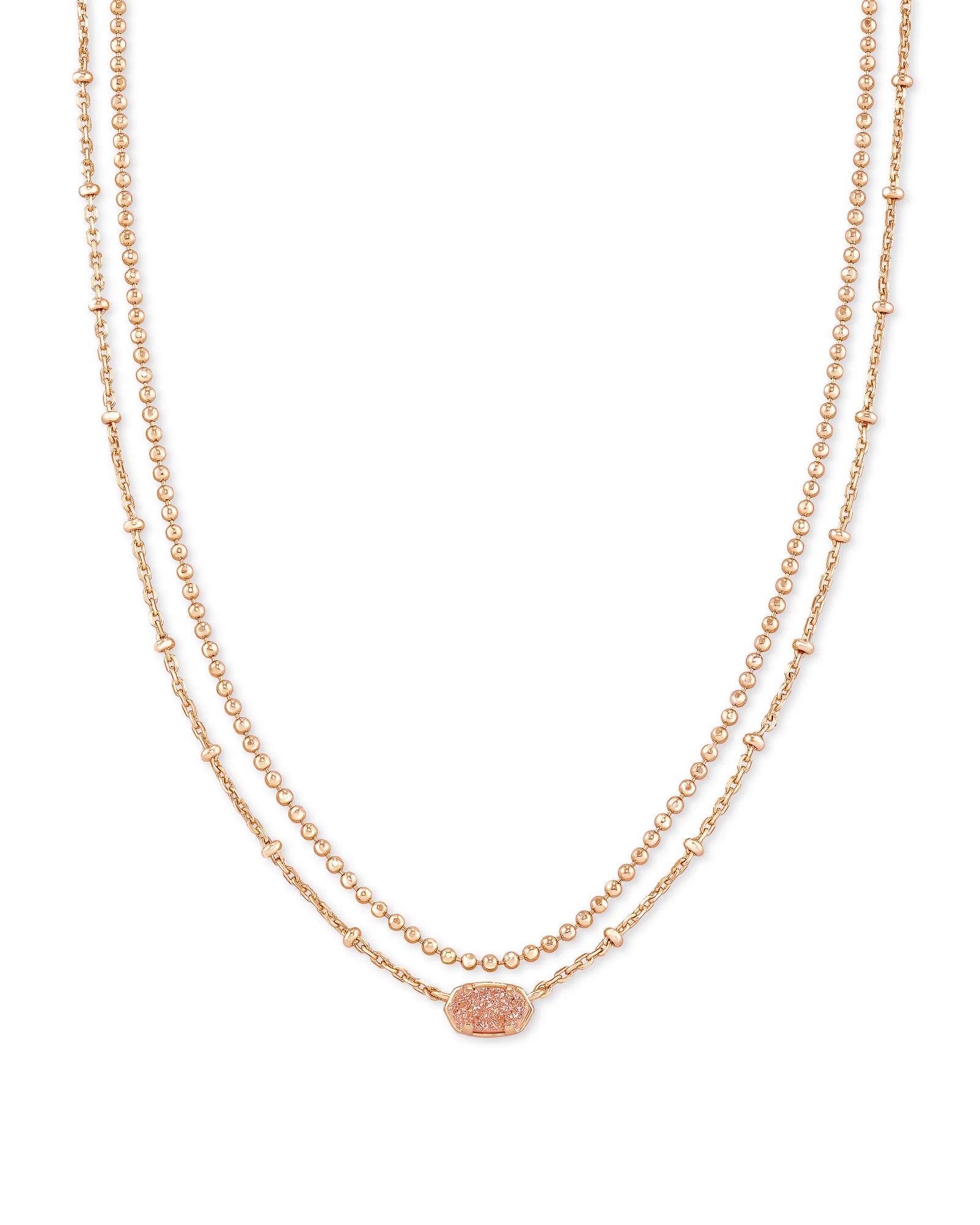 Emilie Rose Gold Multi Strand Necklace in Sand Drusy