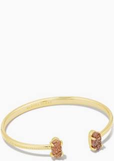 The Grayson style you know and love, now inlaid with a custom stone. With an adjustable metal cuff bookended by beautiful stones in our signature oval shape, the Grayson Gold Stone Cuff Bracelet in Spice Drusy is sure to capture everyone’s attention.