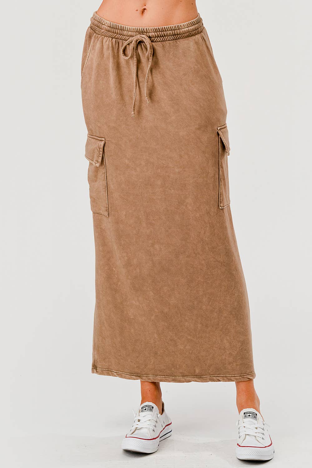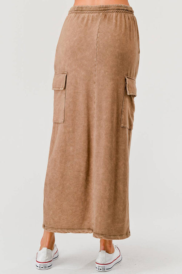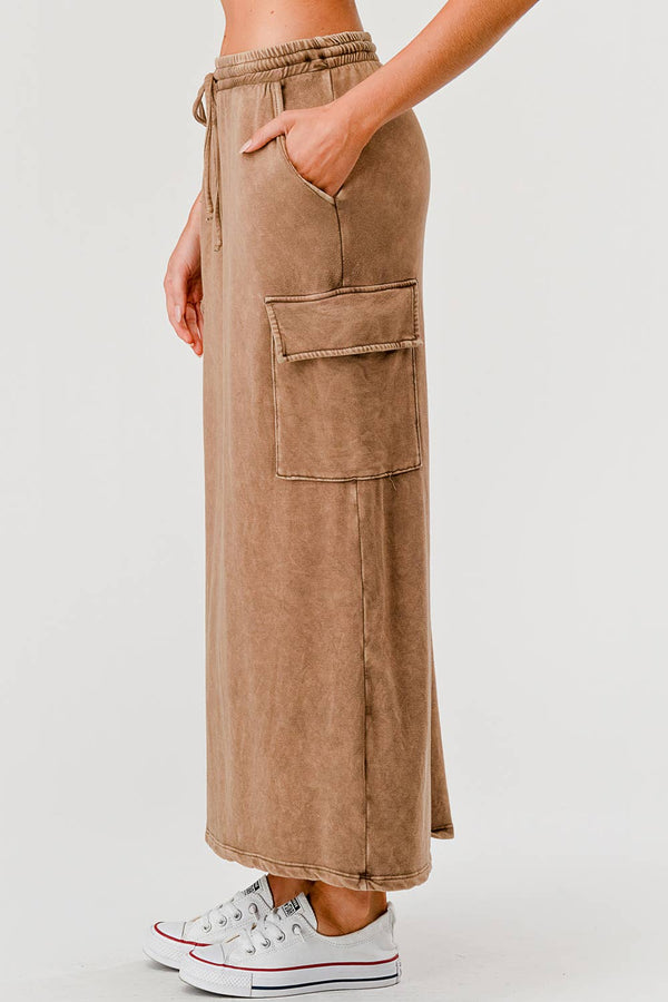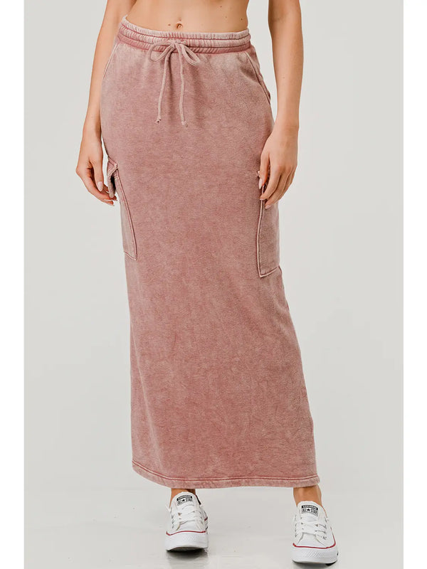 Slip into effortless comfort with this garment-dyed cargo maxi skirt crafted from brushed triblend fleece. Featuring practical slant pockets for all your essentials, an adjustable elastic drawstring waist, and a mineral-washed finish that gives it that perfectly lived-in vibe. At 11.5 oz, it's substantial enough to keep you cozy without the bulk. Your new go-to for laid-back style.