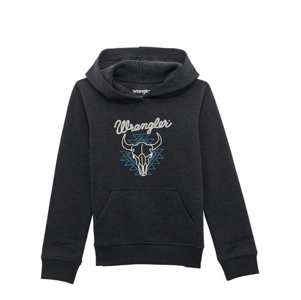 The Wrangler® Boys Hoodie in Jet Black combines comfort and cool style with its soft 60% cotton and 40% polyester fabric. This graphic long sleeve hoodie features a handy kangaroo pocket, perfect for keeping little hands cozy or storing treasures. From the Wrangler® Western Outerwear collection, it’s designed to keep boys ready for fun and adventure all day long.
